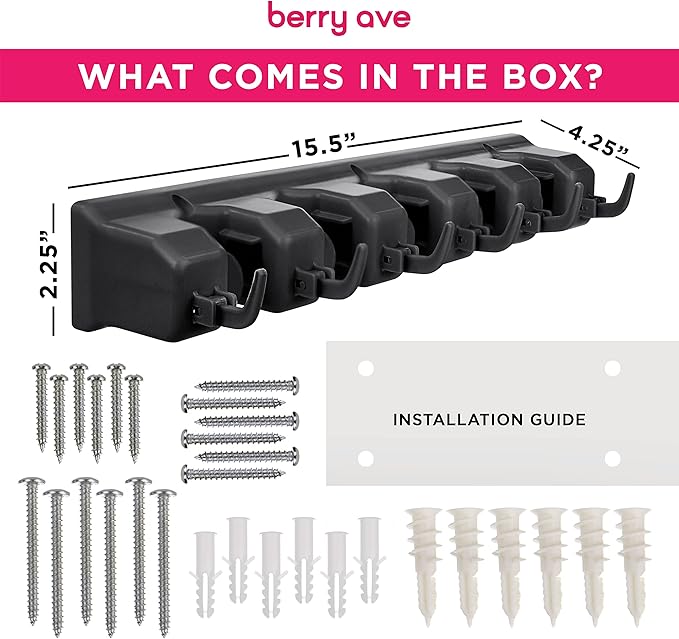 - NO SLIDE, NO MESS – Each commercial grade broom hanger has a 35 pound holding capacity. Thanks to the spring loaded, double rubber gripped slots, the Berry Ave utility hooks can hold anything from wet mops and dirty rakes to baseball bats, without any annoying slipping.