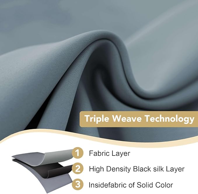 - MULTIPLE FUNCTIONS: These soft and durable curtains are made by innovative technology durable yarn, high performance on room darkening, thermal insulated, noise reducing, energy saving / efficiency and privacy protection
