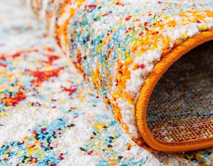 Unique Loom Rosso Collection Vintage, Traditional, Bohemian, Geometric, Distressed, Southwestern Area Rug (2' 7 x 10' 0 Runner, Beige/Orange)