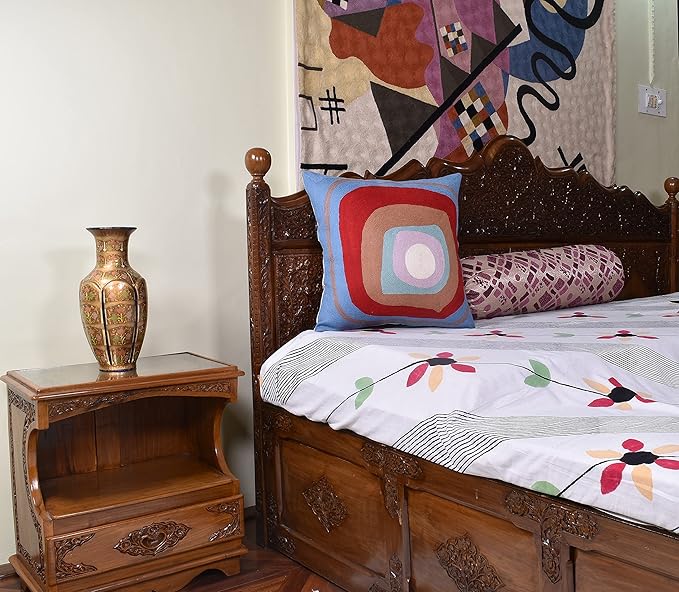 - ๐ MODERN THROW PILLOW COVER - HAND EMBROIDERED: These colorful decorative modern throw pillow covers are inspired by the art of Kandinsky and are hand embroidered in soft wool to perfection, stitch by stitch, by the finest artisans, creating an extraordinary all modern abstract pillow for your home decor. A close-up view of this all modern accent pillow cover allows you to see the amazing fine chain-stitch hand embroidery. A perfect modern sofa pillow for your contemporary couch.