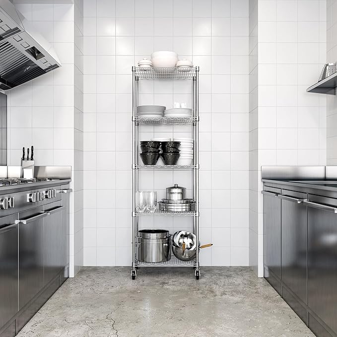 Seville Classics UltraDurable Heavy Duty NSF Solid Steel Wire Rack Storage Unit Organizer for Garage, Warehouse, Office, Restaurant, Classroom, Kitchen, 5-Tier Shelving, 24" W x 18" D