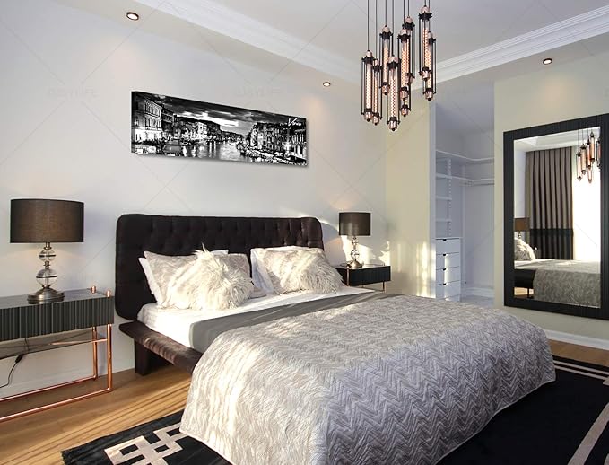 - Black and White Wall Art: skyline pictures for bedroom, Italy venice grand canal city skyline ,black art theme room decor is very suitable for gray, yellow, blue, brown, silver, gold, or bohemian style walls. Applicable place:Bedroom wall decor, kitchen wall decor, wall decorations for living room, bathroom wall decor, rustic wall decor, family wall decor, office wall decor, black wall decor, dining room wall decor, modern wall decor, blue wall decor, inspirational wall art.