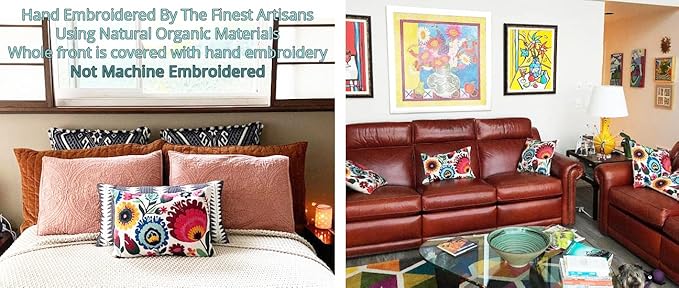 Lumbar Cream Floral Pillow Cover Polish Flower Accent Chair Pillowcase Couch Modern Farmhouse Couch Cushion Hand Embroidered Wool Size 14x20 Inch