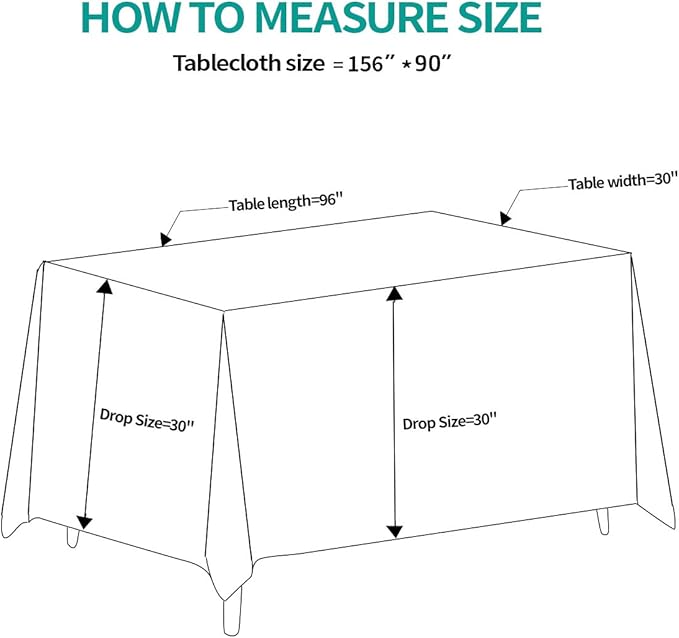 - Ideal size: The 90x156 rectangular tablecloth size is perfect for rectangular and oval tables, providing full coverage protection while also easily hanging down the edges to add a touch of elegance to your table
