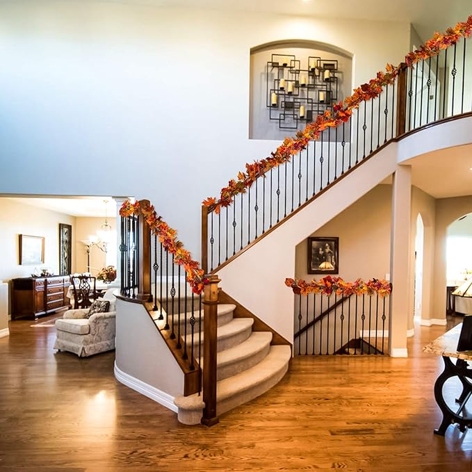 - 【Quality Material】-- The maple leaves are made of quality plastic and silk cloth leaves, durable and vivid; The garland stems are made of flexible wire, can be shaped freely to meet any space of decorations.