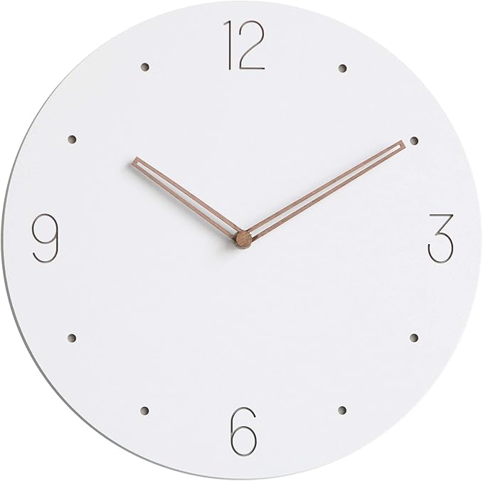 Stephanie Imports Modern Minimalist Wood on White Silent Wall Clock