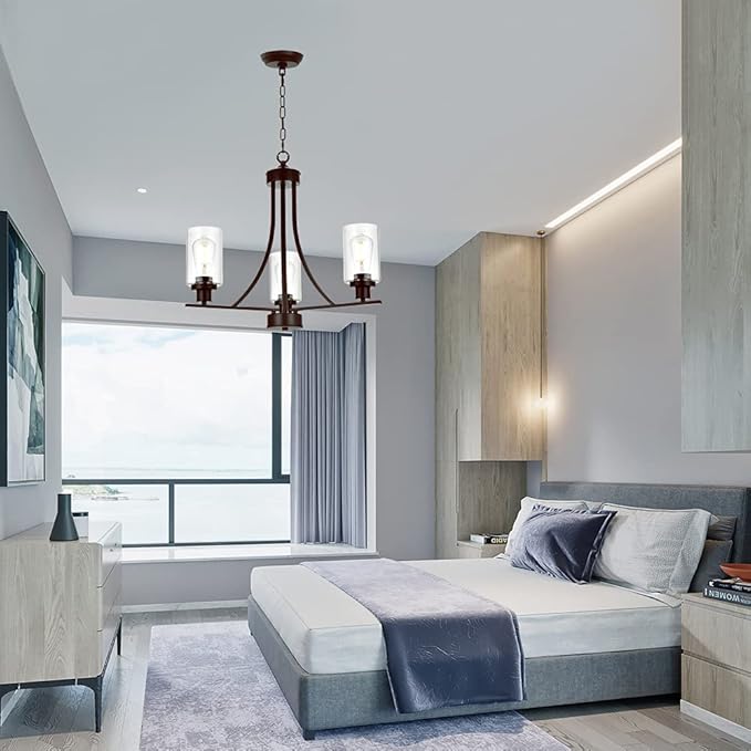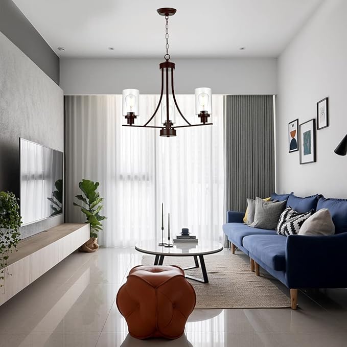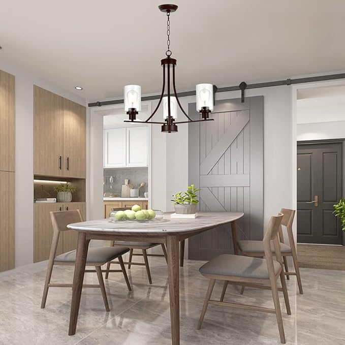 - 💧 3 Light Glass Chandelier: This rustic kitchen dining room chandelier with high clear glass shades,it is an elegant update for traditional and modern homes alike.It's the perfect light fixture to install in kitchen, island, dining room,living room,foyers ,hallway,bedroom,coffee bar, lobby, restaurant and any space you like.