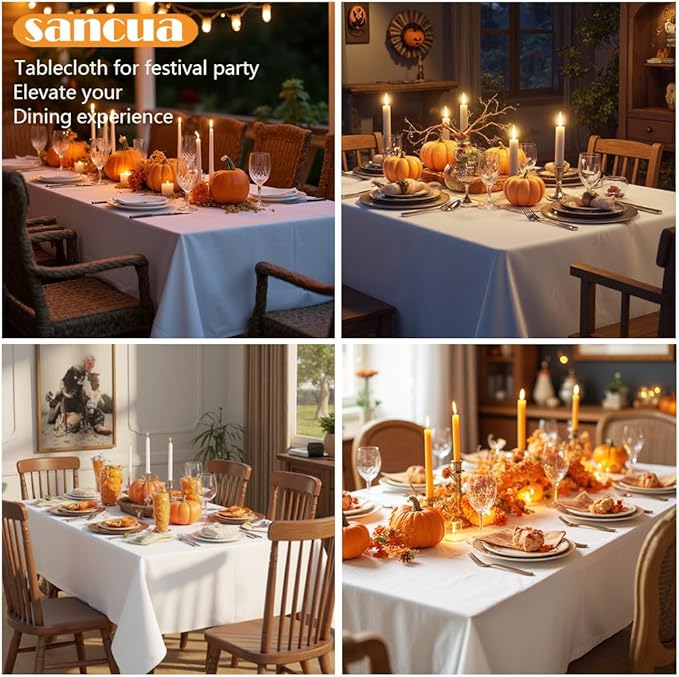 sancua Rectangle Tablecloth - 60 x 84 Inch - Stain and Wrinkle Resistant Washable Polyester Table Cloth, Decorative Fabric Table Cover for Dining Tables, Buffet Parties and Camping, White