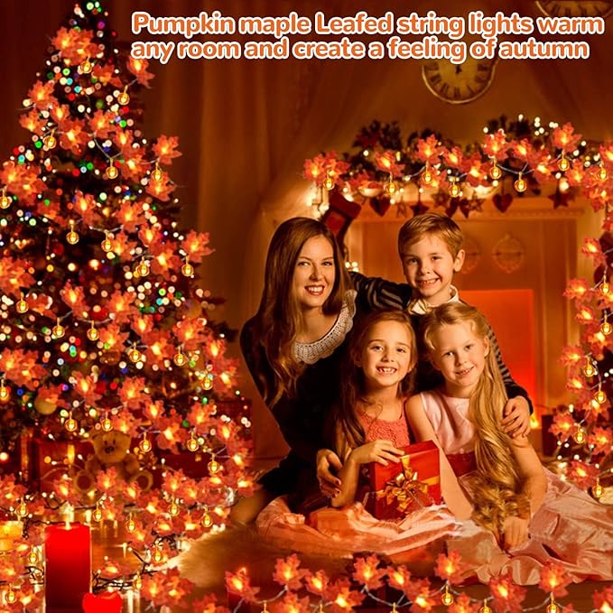 - Fall Decorations: This warm white LED Maples Leaves Pumpkin string lights can create a warm and romantic festive atmospheres. Easy to decorate in tabletop, mantel, fireplace, door, frame, stair banisters, Autumn, and Thanksgiving