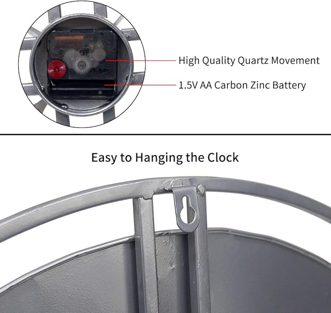 24 inch Large Wall Clock Decorative Metal Retro Oversized Clocks Decor for Home Farmhouse Living Room