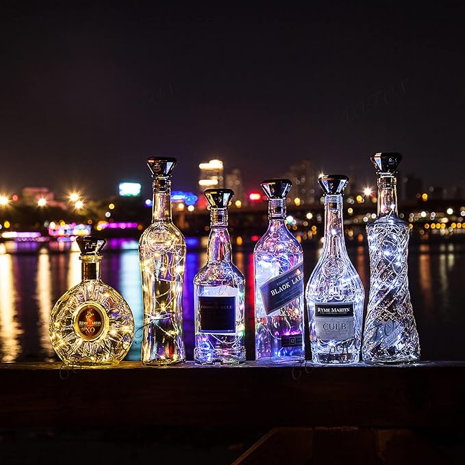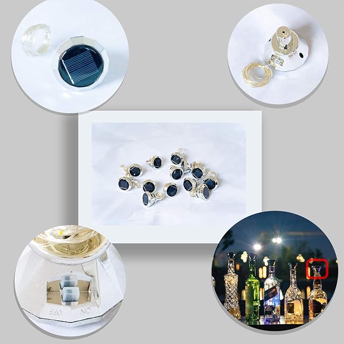 - Easy To Use and Install -- Each bottle cork with an ON/OFF Switch. Our bottle lights are easy to fit into the top of the wine bottle. You don't have to drill a hole in the bottle. Just Simply Switch on the Lights and then insert in the bottles. A built-in light sensor ensure that it turns on at dusk and turn off by dawn automatically