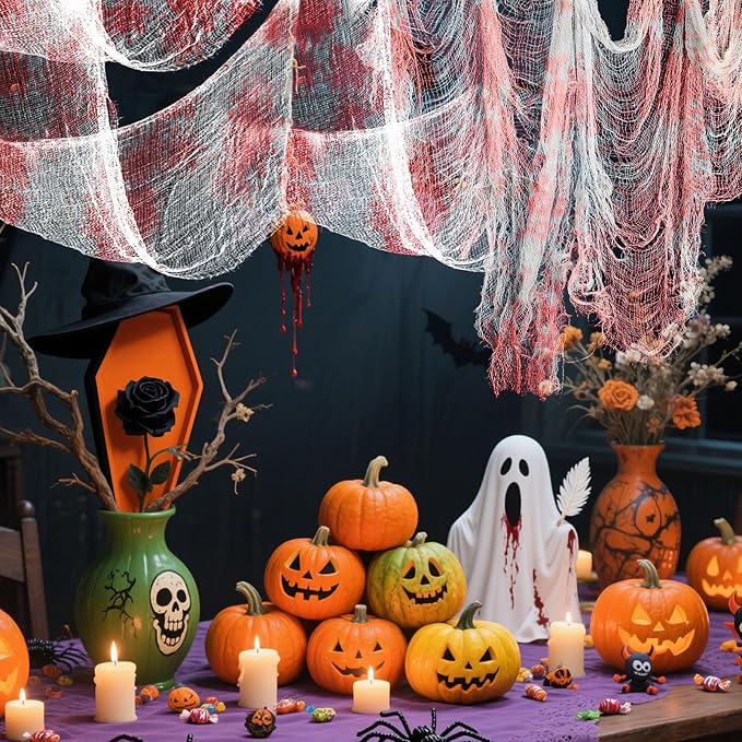 - Package Includes & Suitable Size: total 5 packs bloody spooky and scary fabric creepy gauze cloth in package, enough quantity for your Halloween haunted horror house party decoration. The length of creepy cloth is 30 inches and the width is 72 inches, the large size can be used as a decorative door curtain.