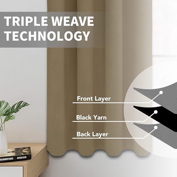 Easy-Going Blackout Curtains for Bedroom, Solid Thermal Insulated Grommet and Noise Reduction Window Drapes, Room Darkening Curtains for Living Room, 2 Panels (52x96 in,Tan)