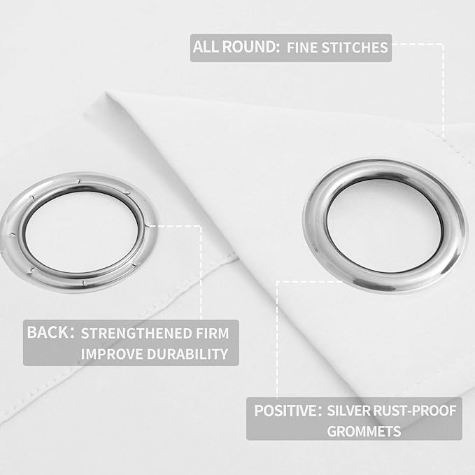 Easy-Going Blackout Curtains for Bedroom, Solid Thermal Insulated Grommet and Noise Reduction Window Drapes, Room Darkening Curtains for Living Room, 2 Panels (52x108 in,White)