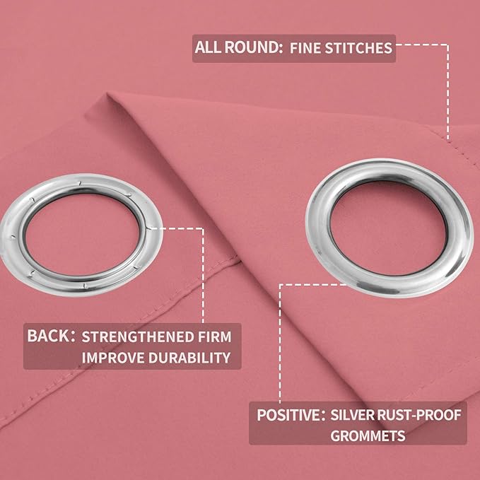 Easy-Going Blackout Curtains for Bedroom, Solid Thermal Insulated Grommet and Noise Reduction Window Drapes, Room Darkening Curtains for Living Room, 2 Panels (52x84 in,Pink)