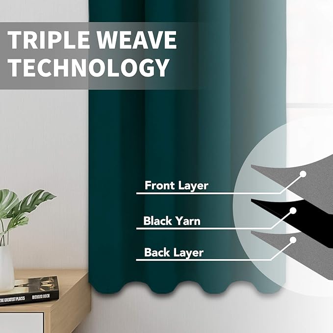 Easy-Going Blackout Curtains for Bedroom, Solid Thermal Insulated Grommet and Noise Reduction Window Drapes, Room Darkening Curtains for Living Room, 2 Panels (52x108 in,Deep Teal)