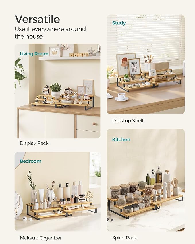 - 【FIND AT A GLANCE】With its specially designed tiered structure and each tier being 3" deep, this display riser ensures all your spice jars and items are clearly visible and easily accessible, preventing messes and keeping your kitchen organized