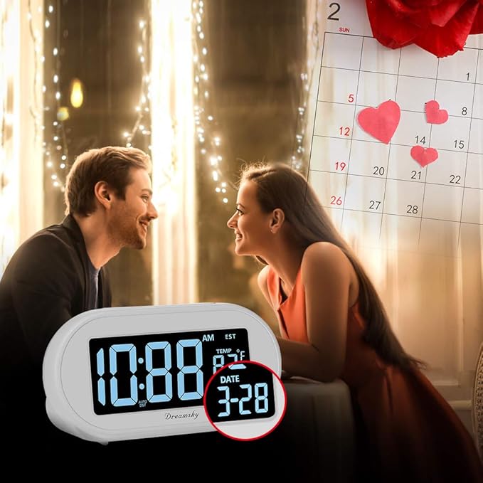 DreamSky Alarm Clocks for Bedrooms, Auto Set Digital Desk Clock for Bedside Nightstand, Electric Clock with Dimmable Brightness Dimmer, Auto DST, USB Port, Date, Temperature, Snooze