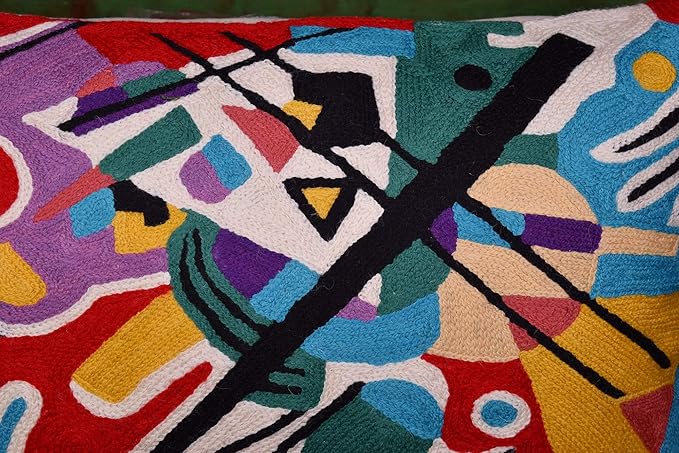 Lumbar Kandinsky Red Abstract Pillow Cover Modern Throw Pillowcase Modern Chair Cushion Red Contemporary Pillowsham Farmhouse Couch Cushions Hand Embroidered Wool Size 14x20