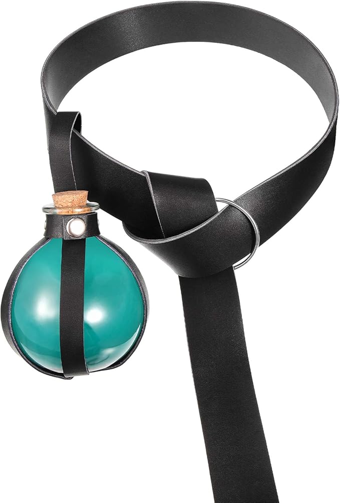 - What you get: package includes 1 piece 200 ml clear glass cork-top spherical ball bottle, equipped with a medieval leather belt, a wonderful combination that will help you add the finishing touch for any witch or wizard costume