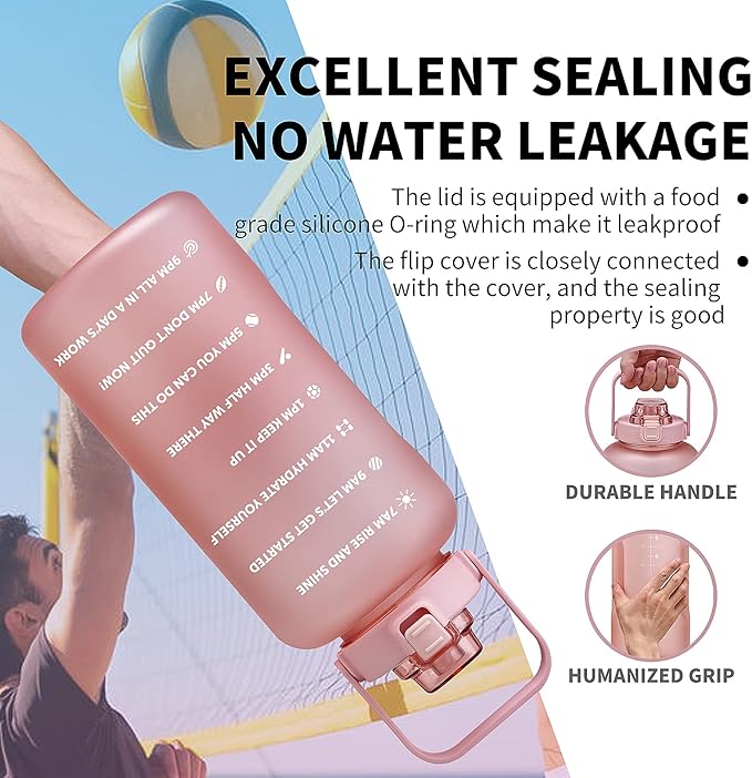 - đȘăMotivational Quote & Time MarkerăThe 128 oz large fitness water bottle jug with straw is with time markers to drink and unique motivational measurement statements on it, the big gallon water bottle with the tracker is the best choice of reminding you to stay motivated to drink enough water daily. It is important and easy for achieving healthy fitness goals including weight loss, muscle gain, keep hydrated and healthy with the aqua bottle.