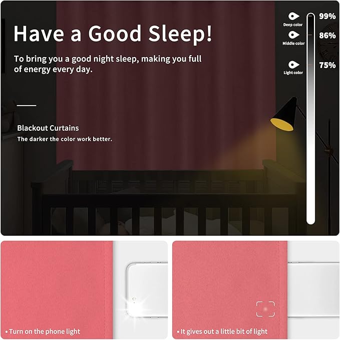 - Multiple Functions: Our curtains can block out sunlight and UV ray ( Darker colors work better), insulate against summer heat and winter chill to balance your room temperature, cut down energy bills. Reduce outside noise, privacy protection, create a good working and sleeping environment for you.