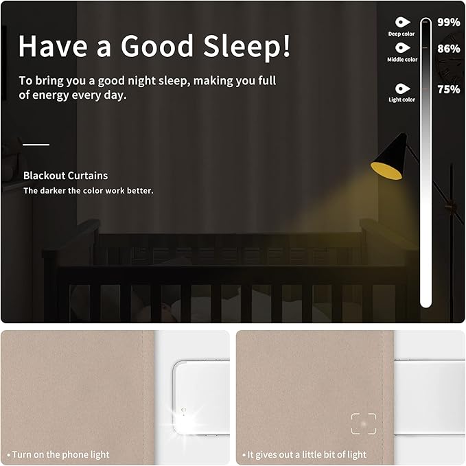 - Multiple Functions: Our curtains can block out sunlight and UV ray ( Darker colors work better), insulate against summer heat and winter chill to balance your room temperature, cut down energy bills. Reduce outside noise, privacy protection, create a good working and sleeping environment for you.