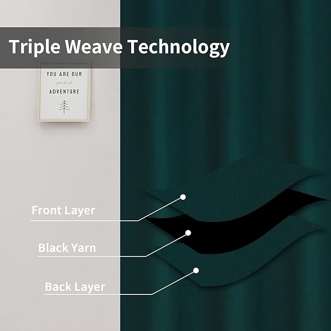Easy-Going Blackout Curtains for Bedroom, Solid Thermal Insulated Grommet and Noise Reduction Window Drapes, Room Darkening Curtains for Living Room, 2 Panels(42x63 in, Deep Teal)
