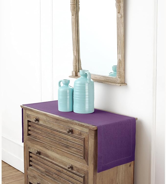 Solino Home Linen Purple Table Runner 72 Inches Long - 100% Pure Linen Hemstitch Table Runner 14 x 72 Inch for Dresser, Dining, Fall, Autumn, Halloween, Thanksgiving - Classic Hemstitch