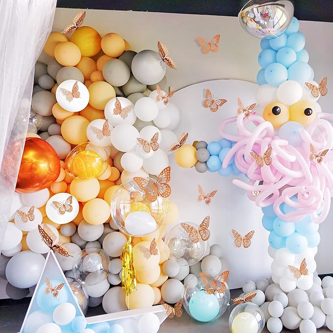 SAOROPEB 3D Butterfly Wall Decor, 48 Pcs 4 Styles 3 Sizes, Removable Metallic Wall Sticker Room Mural Decals for Kids Bedroom Nursery Classroom Party Decoration Wedding Decor DIY Gift (Rose Gold)