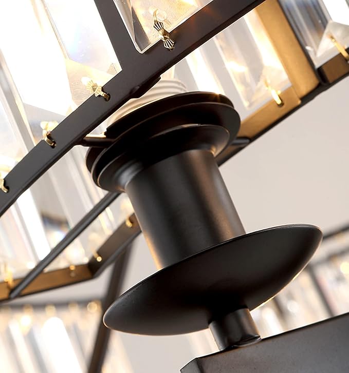 - Retro and Luxury Design: The combination of black metals and raindrop K9 clear crystal creating a rustic yet luxurious retro atmosphere. The lamp frame of this round chandelier is oil rubbed, which is anti-corrosive and rust-proof, durable, and easy to clean. Ideal for dining room, living room, high ceiling foyer, stairway, hallway.