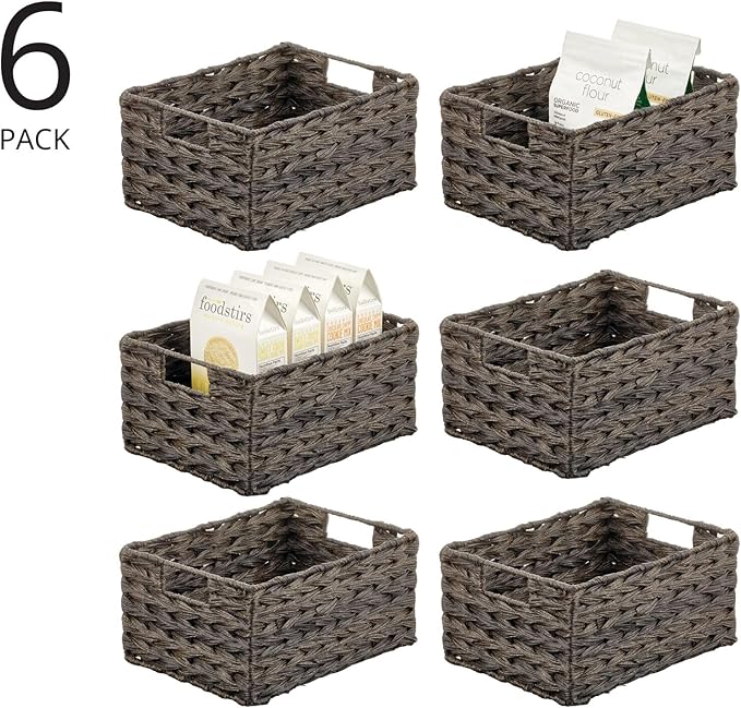 mDesign Woven Farmhouse Kitchen Pantry Food Storage Organizer Basket Box - Container Organization for Cabinets, Cupboards, Shelves, Countertops, Store Potatoes, Onions, Fruit, 6 Pack, Espresso Brown