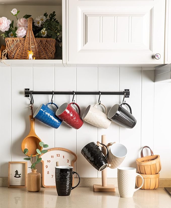 - Large Open Handle and Stylish Design: These coffee mugs features a large open handle that provides a comfortable and secure grip. The handle remains cool even after microwaving, and the beverages stay warm. The smooth rim of the mug ensures a comfortable drinking experience. Designed by professional artists, these mugs with geometric relief patterns not only look fantastic on your table but also add a touch of style to your kitchem