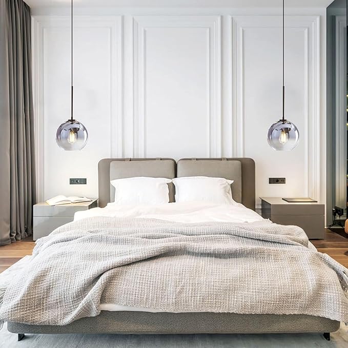 - Adjustable Pendant Light: The modern glass ball kitchen island lighting comes with a long hanging cord, you can hang higher or lower as you want. The kitchen pendant lighting compatible with different types of ceilings, even sloped ceilings, vaulted ceilings, and flat ceilings