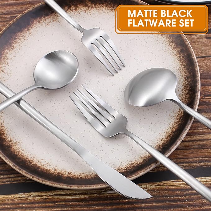 Matte Satin Finish Silverware Set, 40-Piece Tableware Cutlery Set, Utensils Set Service for 8, Dishwasher Safe