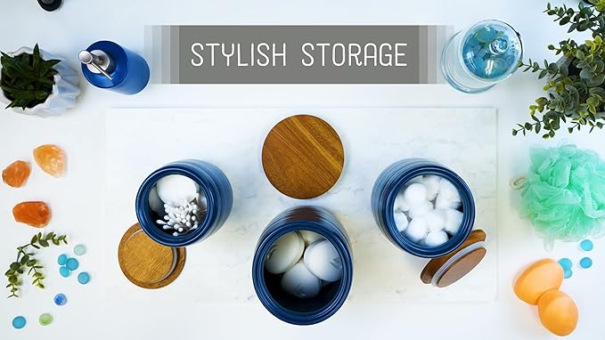 Nat & Jules Lidded Navy Blue 6 inch Ceramic and Wood Kitchen Canisters Set of 3