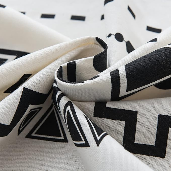 Sutuo Home Black and White Boho Curtain 84 Inches Length for Bedroom, Printed Cotton Linen Geometric Rod Pocket Chic Semi Blackout Bohemian Tassels Window Treatment, 1 Panel 59" W x 84" L