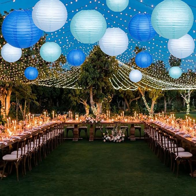 - PERFECT DECORATION- Paper lanterns are suitable for graduation party decorations, men birthday decorations, boy birthday decorations, blue bachelorette party decorations and new years decorations, for night use, you can put a light inside the lantern