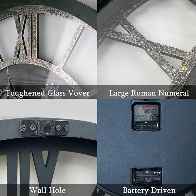 - đŁUnmatched Craftsmanship: Each oversized wall clock is carefully crafted by skilled artisans using real wood frames that are hand painted for a high end finish. Not only is it a beautiful and long lasting interior decoration.