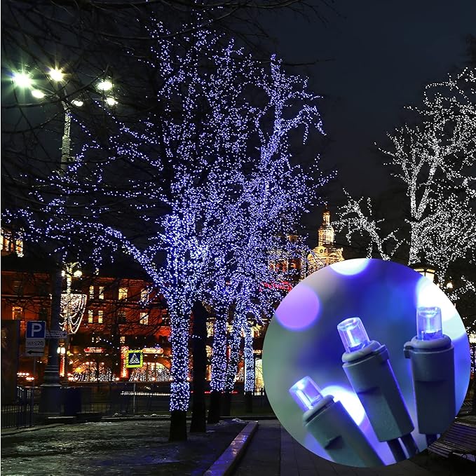 - High quality: Commercial grade 22 gauge wire with a pure copper core, wrapped in rubber that is infused with fire resistant materials, for longer runs and extended life. These 5mm feature a concave lens design that disperses uniform light in all directions for amazing color. You never have to worry about the string lights being buried in the bush.