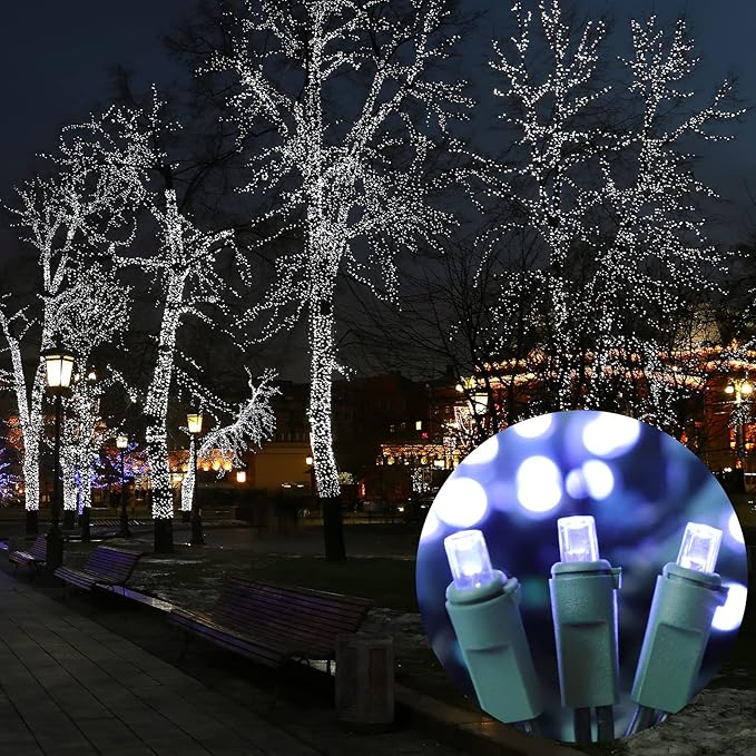 White Wide Angle LED Christmas Lights, 64.8 Ft 300 Count, Pack of 3 Strands 21.9 Ft 100 Lights UL Certified Commercial Grade Green Wire 5mm Holiday String Light