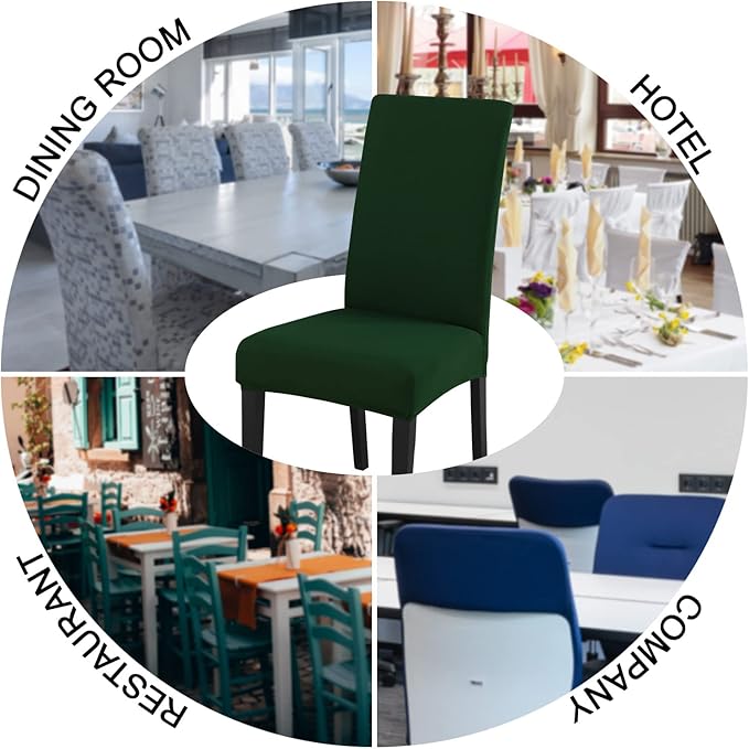JQinHome Chair Covers for Dining Chairs, High Stretch Removable Washable Chair Protector Cover Set of 4, Chair Slipcovers for Dining Room, Kitchen,Home Party,Wedding Ceremony(Hunter Green, 4PC)