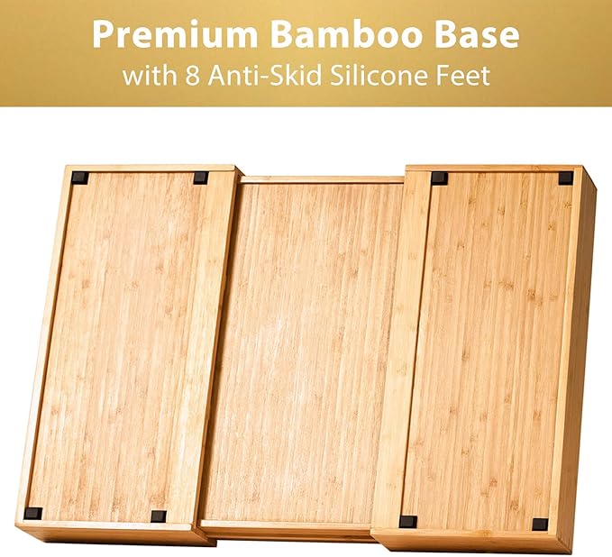 - PREMIUM BAMBOO & SOLID CONSTRUCTION: Made of organic bamboo, more sustainable and durable. This kitchen organization tray is built with thick frames and base, reinforced corners with mortise and tenon structure, it holds up much better and lasts longer.