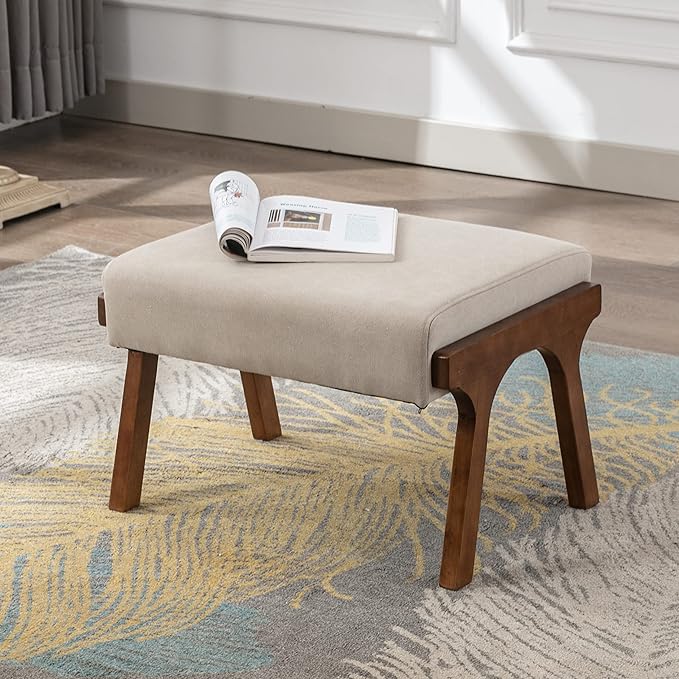 chairus Mid-Century Modern Accent Chair with Ottoman, Linen Fabric Armchair with Wood Legs Comfy Upholstered Single Sofa Chair for Living Room/Bedroom/Lounge, Beige