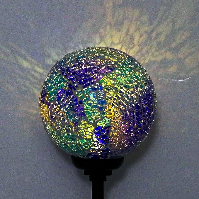- 【Mosaic Globe Design】Mosaic solar garden lamp adopts hand-made color flower petal glass fragment design, solar ball light makes your garden more beautiful and elegant. Ideal choice of outdoor decorative lamp