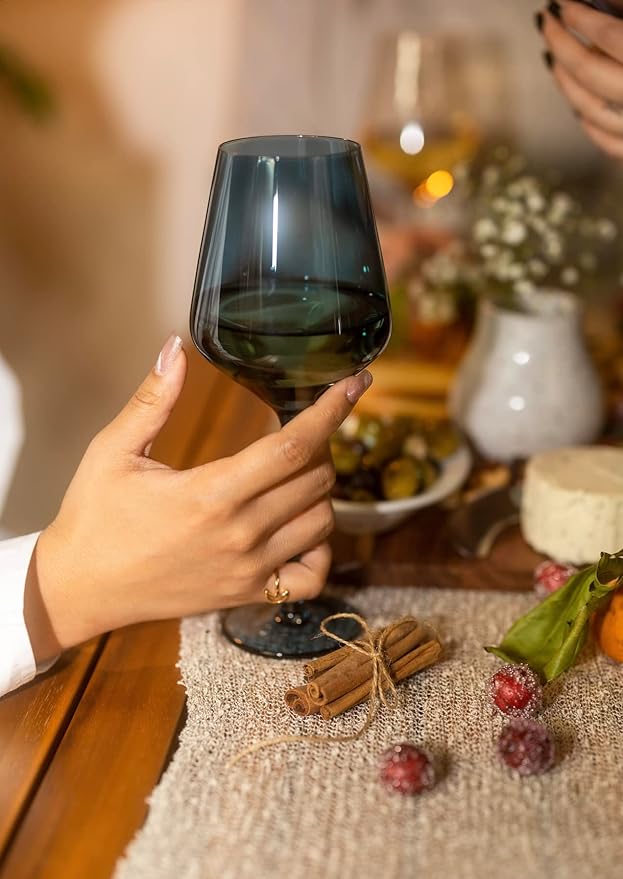 Saludi Original Midnight Blue Wine Glasses, 16.5oz (Set of 6) Stemmed Single Color Blue Glass - Great for All Wine Types and Occasions or Gifts - Luxury, Durable, Hand-Blown
