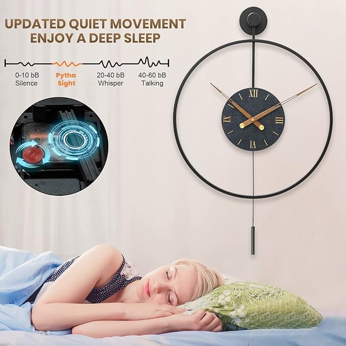 - 【Our Promise Service】Please be sure to watch the installation video after purchase.If your wall clock with pendulum can't swing or hang, please contact us at the first time and we will help you solve the problems! If the black wall clocks don't work,please contact us,we'll offer you after-sale service and our team will give you satisfactory after-sales service within 24 hours.