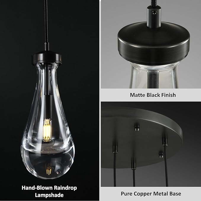 - 【Hand-blown 5-Light Raindrop Pendant Light】Classic raindrop glass shade is hand-blown by artisans, each raindrop shade is unique. Bronze raindrop pendant lighting fits a variety of decor styles.