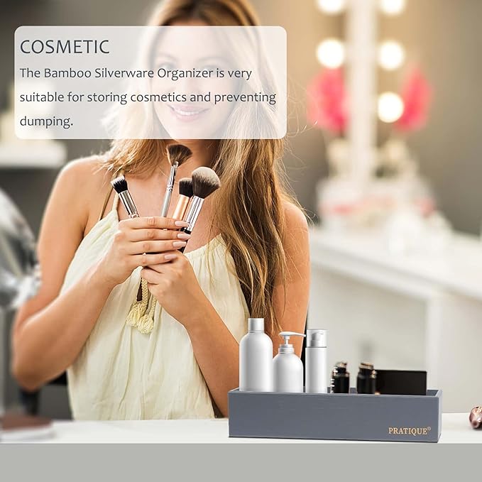 - 【PRACTICAL STORAGE SPACE】PRATIQUE drawer organizer can reduce clutter and avoid desperately searching for lost items. Ensure drawers in the kitchen and beyond are neat and organized.The flatware organizer is made of bamboo, which has a neutral light wood color and it will look beautiful as your kitchen, closet, garage and office drawer.
