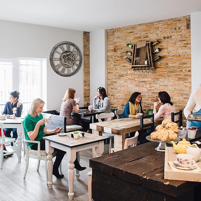 - WIDE APPLICATIONS: Oversized wall clock is not only a timepiece, but also a piece of artwork, greatly adding charm to a room, like living room, farmhouse, fireplace, bedroom or dining room, studio, gallery, loft, cafe, bar, club, etc. Rustic vintage wall clock will become an instant conversational piece for the moving gears and how cool it looks. Also awesome gifts for families or friends